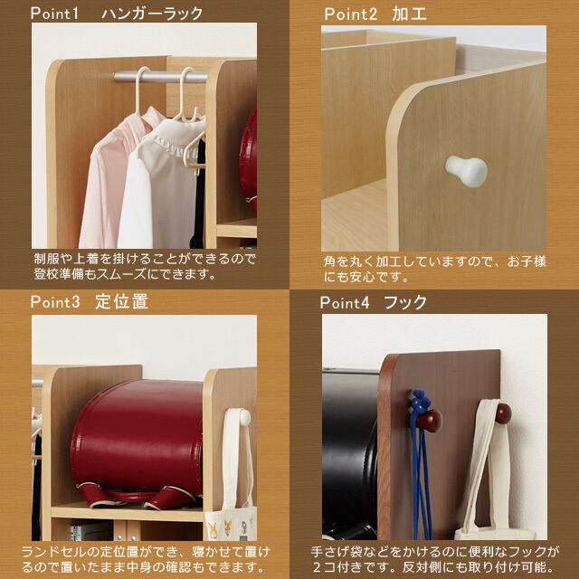 ランドセルや学用品・制服が1ヶ所に収納できるとても便利なランドセルハンガーラックです。