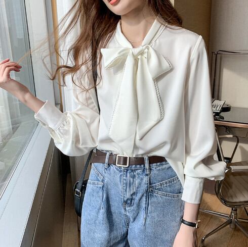 ブラウス トップス シャツ 長袖ブラウス リボン 韓国風 レディース服
