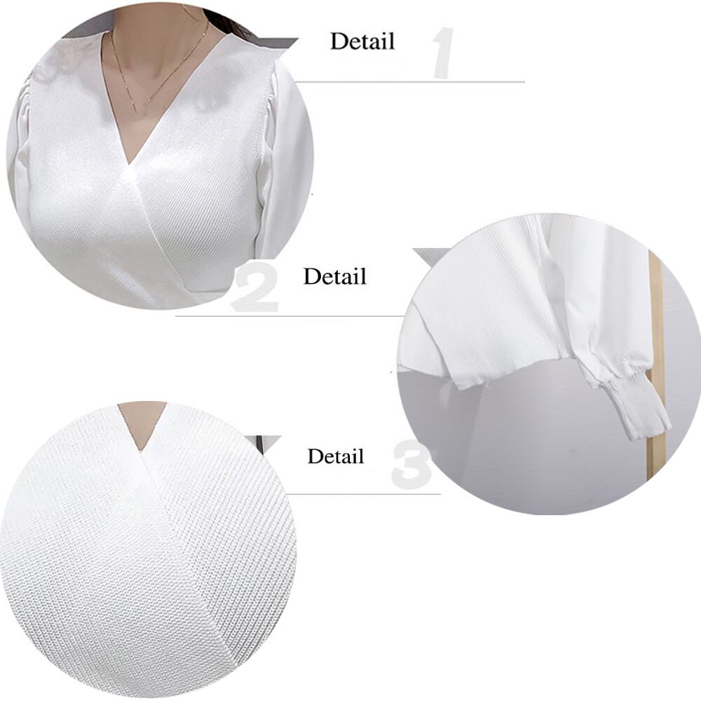 レディース カシュクール ニットセーター パフスリーブ ニットソー Vネック ニットウェア