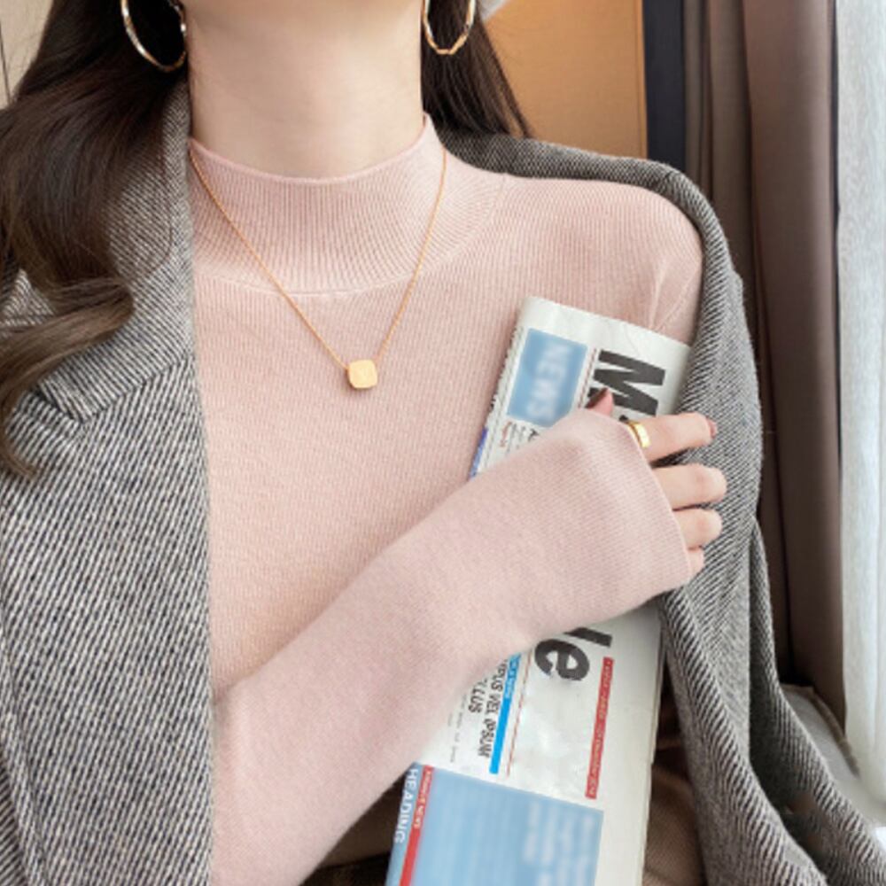 プチハイネック 長袖 薄手セーター カシミヤ風 韓国ファッション 無地 ニットインナー ハーフネック ニットソー