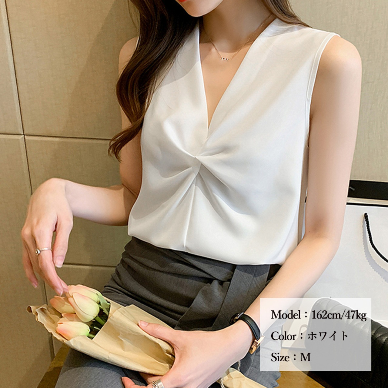 フォーマル夏服通勤 大人上品カットソー 韓国ファッション白